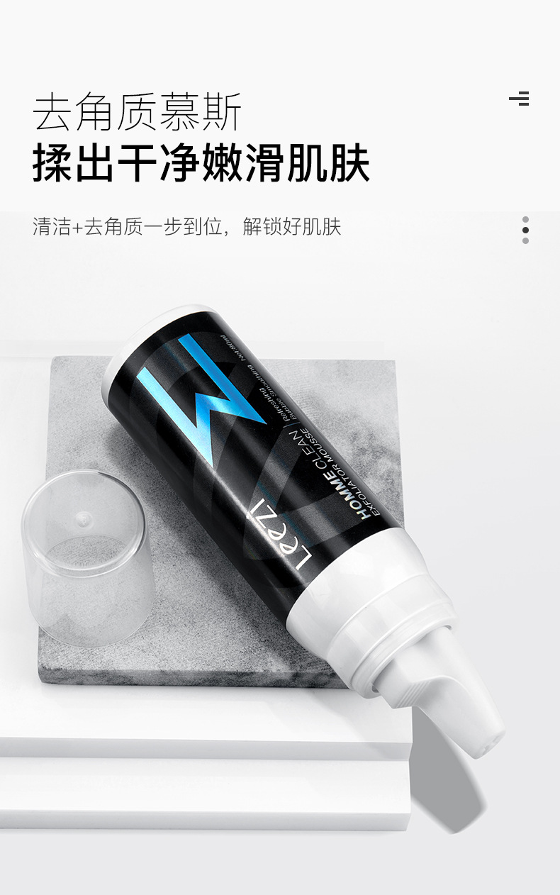 莉兹男士劲爽去角质慕斯深层清洁毛孔去死皮改善粗糙男护肤洗面奶