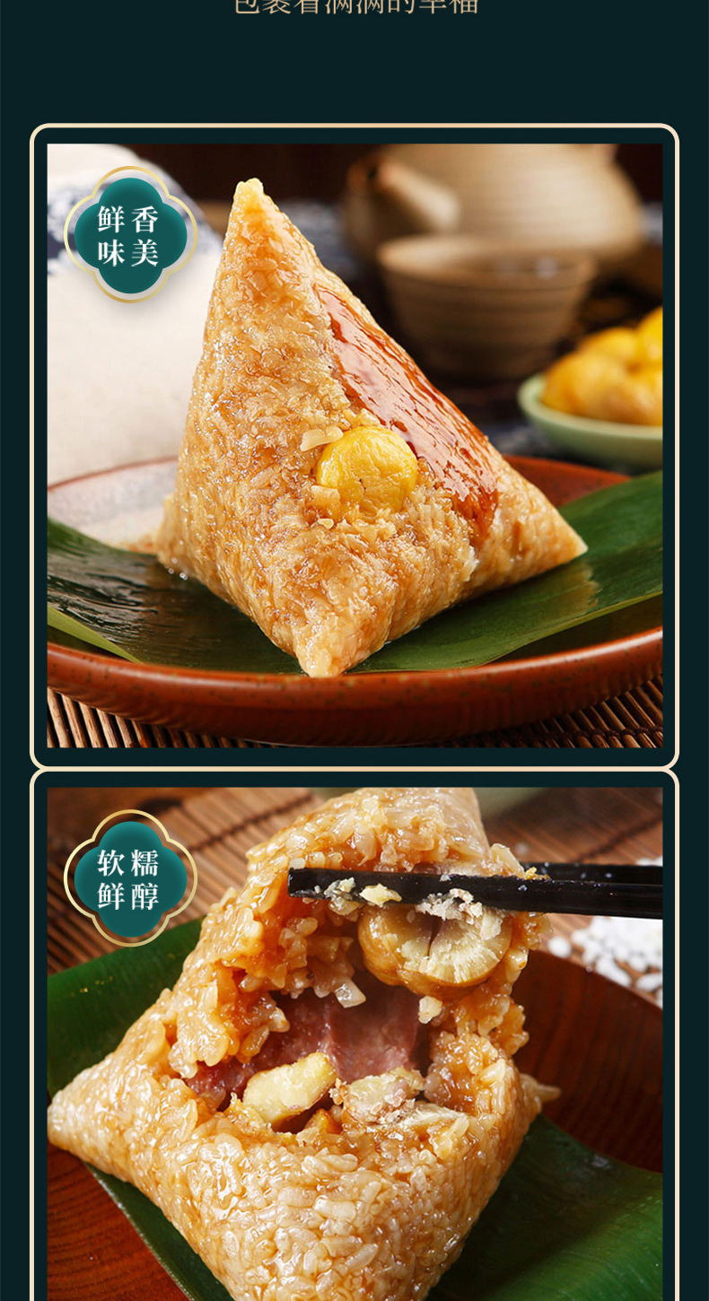 130g/袋*2袋 真真老老真空栗子肉粽130g浙江特产端午节嘉兴粽子速食早餐